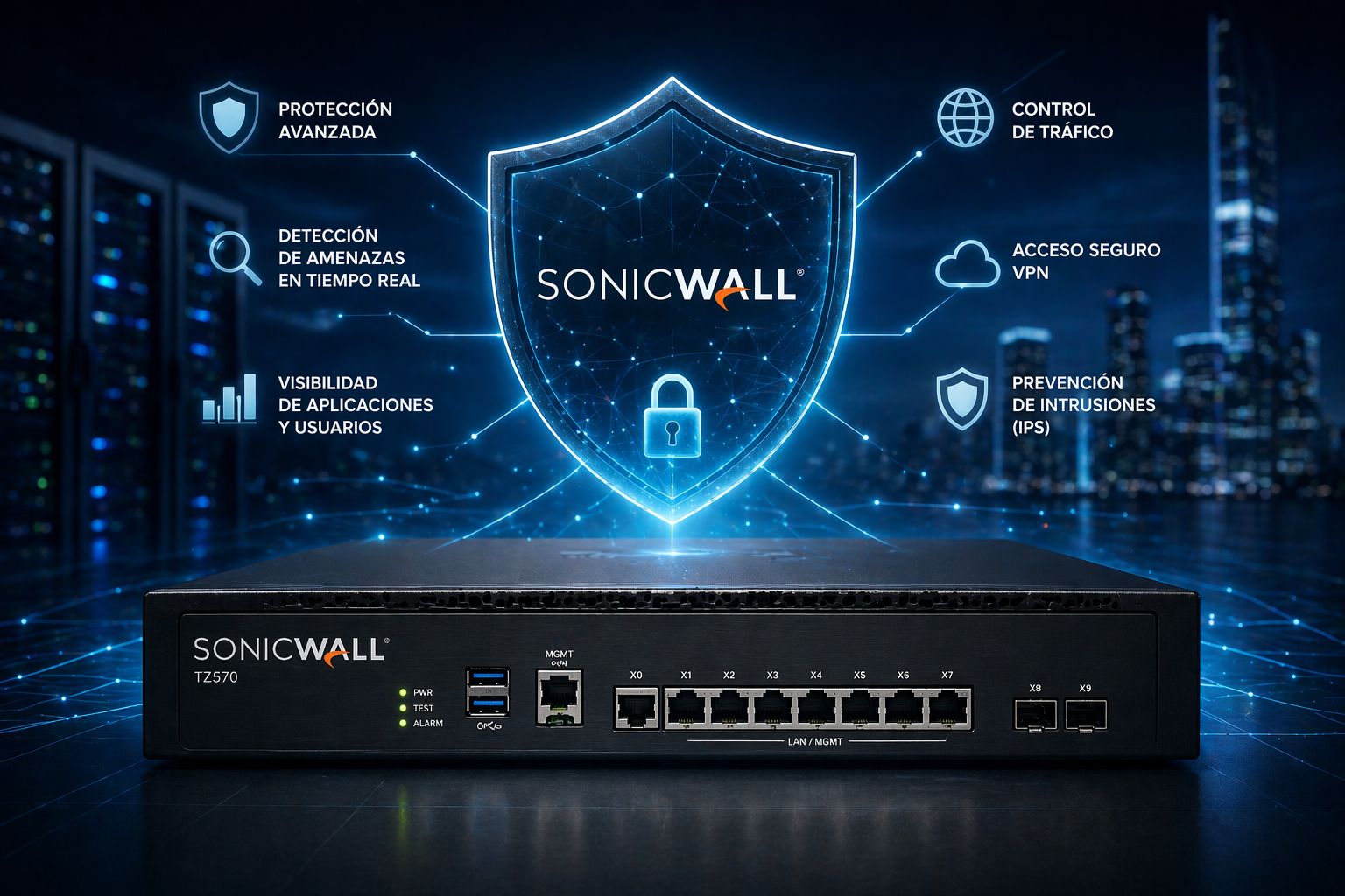 - NGFW SonicWall: Protección en tiempo real contra ataques avanzados.