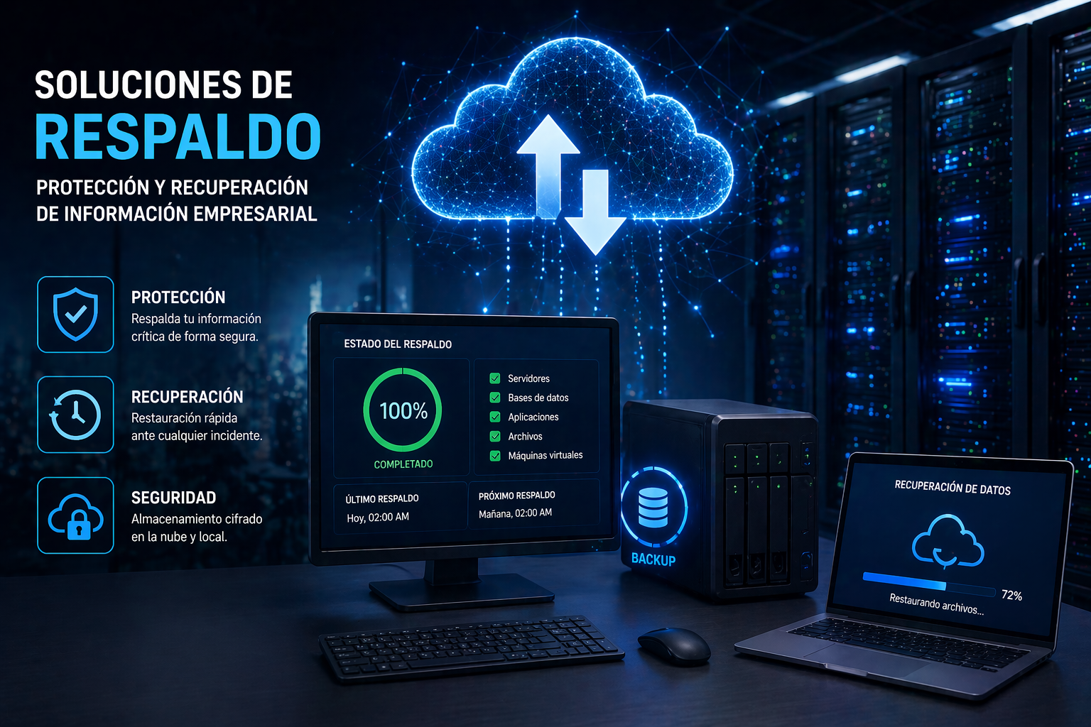 • Backup en la Nube: Protección externa de datos.